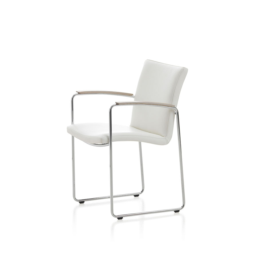 De Talos eetkamerstoel heeft een stijlvolle vormgeving en een hoog zitcomfort. Door zijn bescheiden afmeting kan de Talos ook perfect gecombineerd worden bij kleinere eetkamertafels. De armlegger kent vele mogelijkheden.